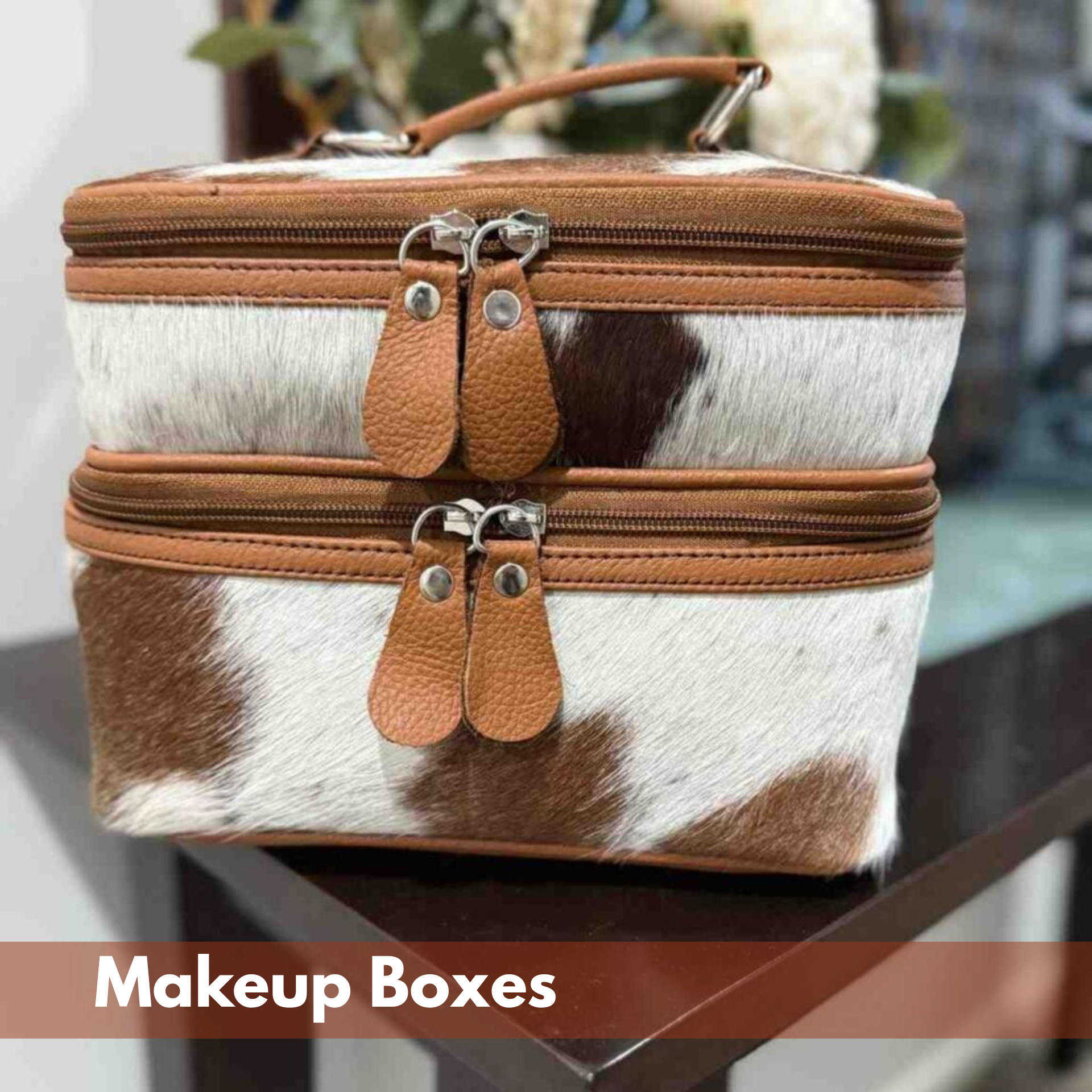 Whether you’re heading to the office, traveling, or adding style to your home, our cowhide collection has you covered. From toiletry bags, totes, crossbody bags, duffels, mini duffels, travel bags, mobile pouches, coin wallets, square wallets, and keychains to makeup boxes.